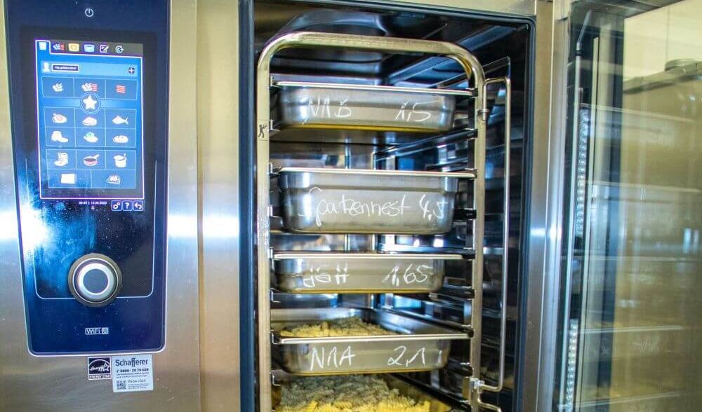 Um Ressourcen zu schonen, planen wir jede Bestellung exakt nach Rezept und halten den Anteil vorgefertigter Komponenten gering. So vermeiden wir Überproduktion und fördern Nachhaltigkeit – ein wichtiger Grundsatz der AWO.