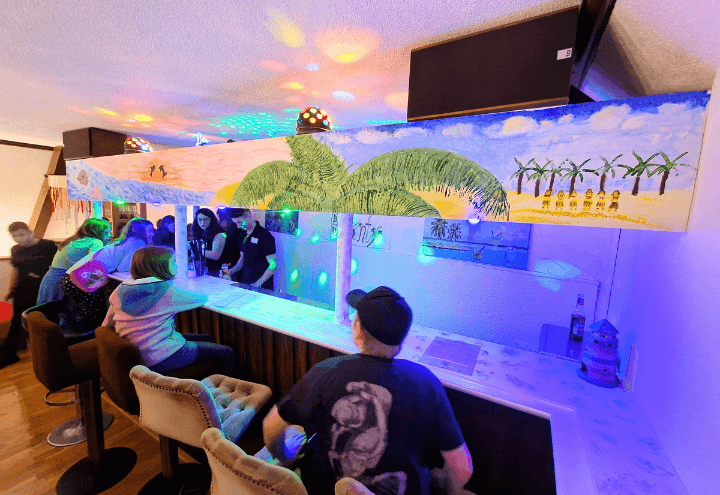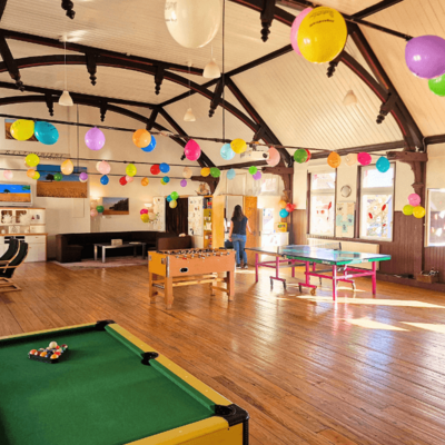 Kicker, Billard, Dart, Playstation auf Großleinwand, Musikinstrumente und vieles mehr zum Ausprobieren