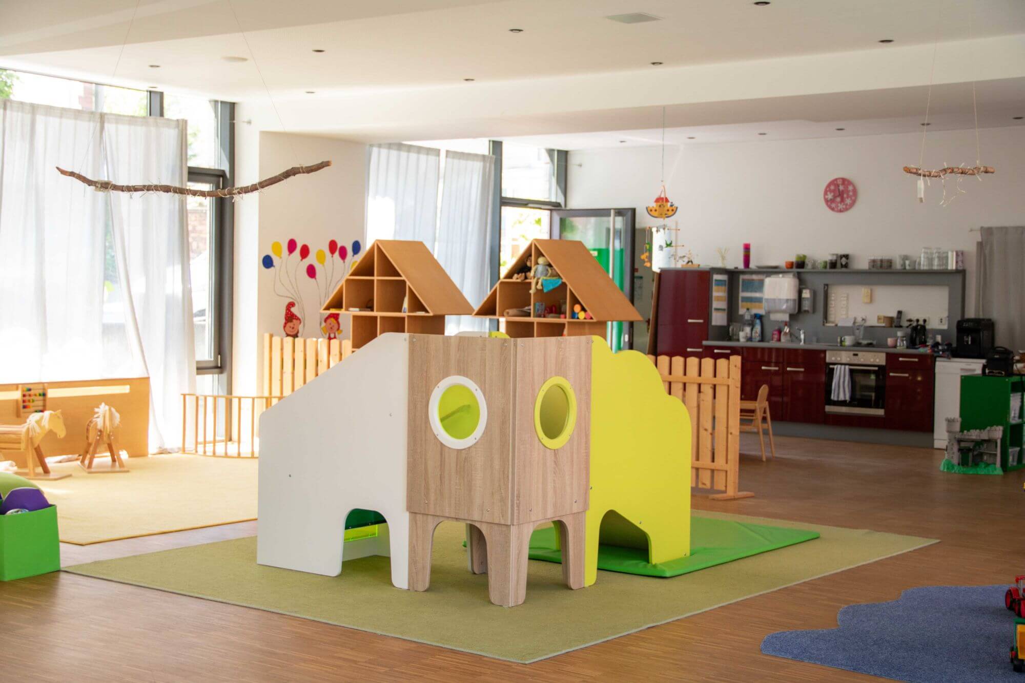 In unserer liebevoll gestalteten Zwergenstube bieten wir den Kleinsten einen geschützten Raum zum Spielen, Lernen und Wachsen. Unser Ziel ist es, die Kinder in ihrer geistigen und körperlichen Entwicklung zu fördern – durch erste soziale Erfahrungen, gemeinsames Entdecken und spielerisches Lernen in einer altersgerechten Umgebung.